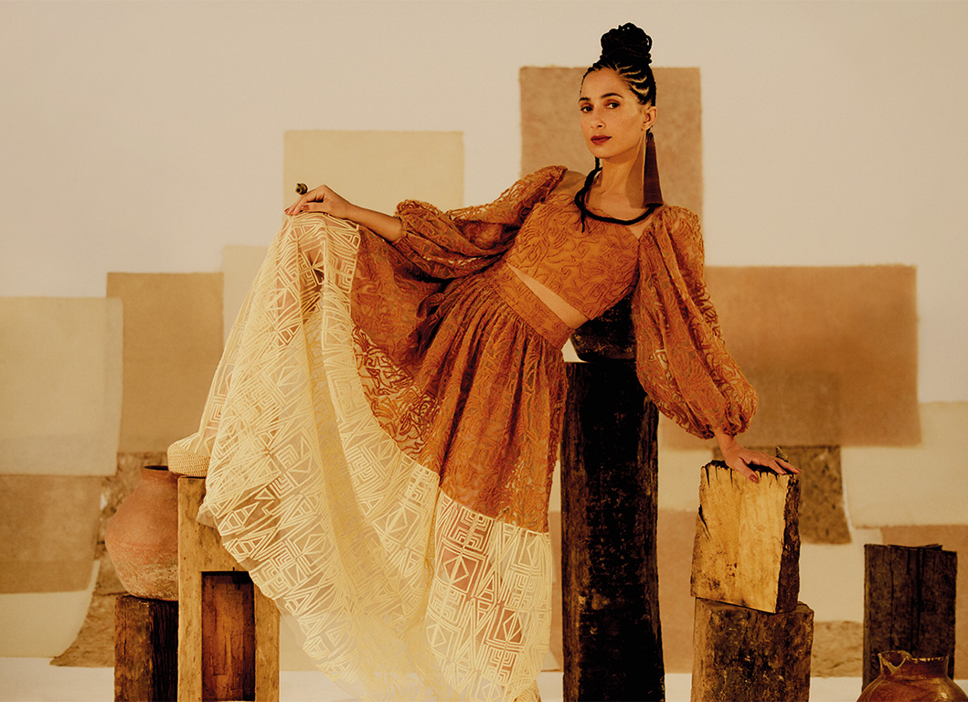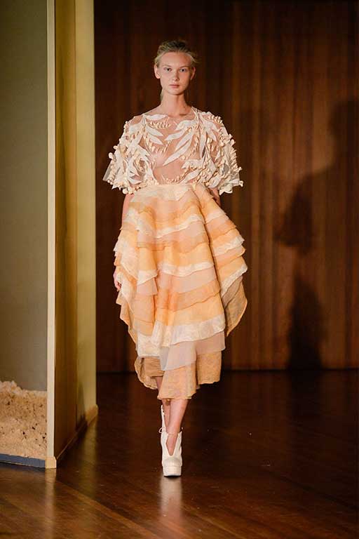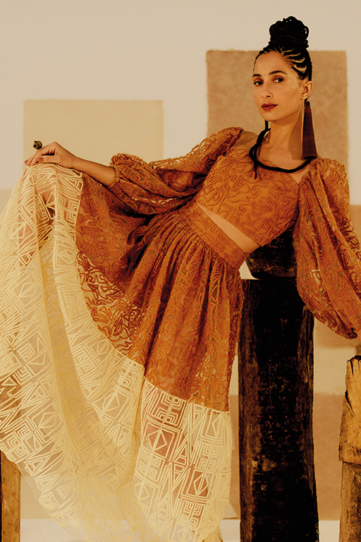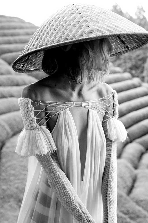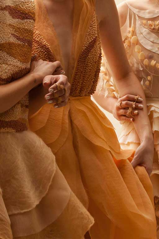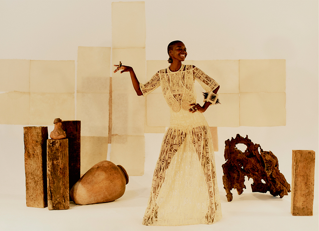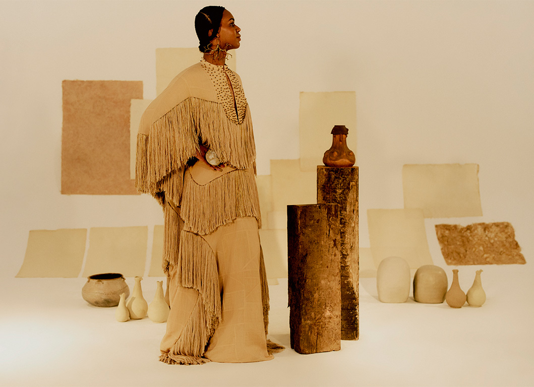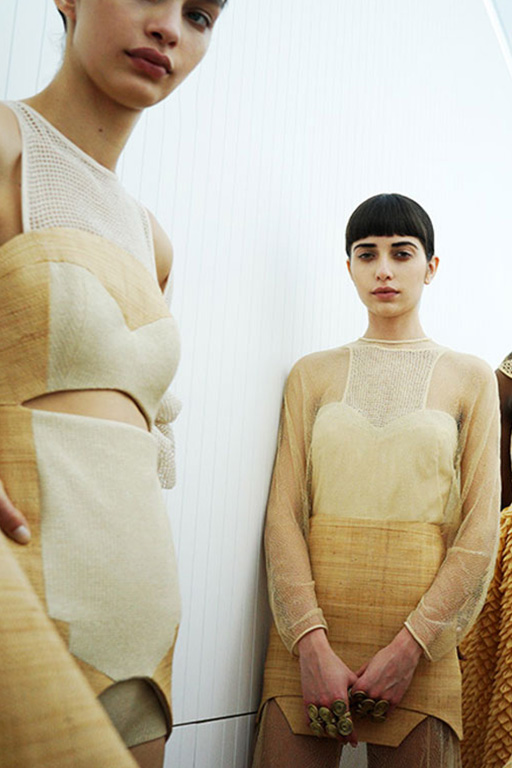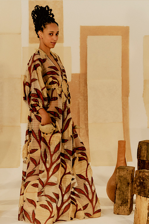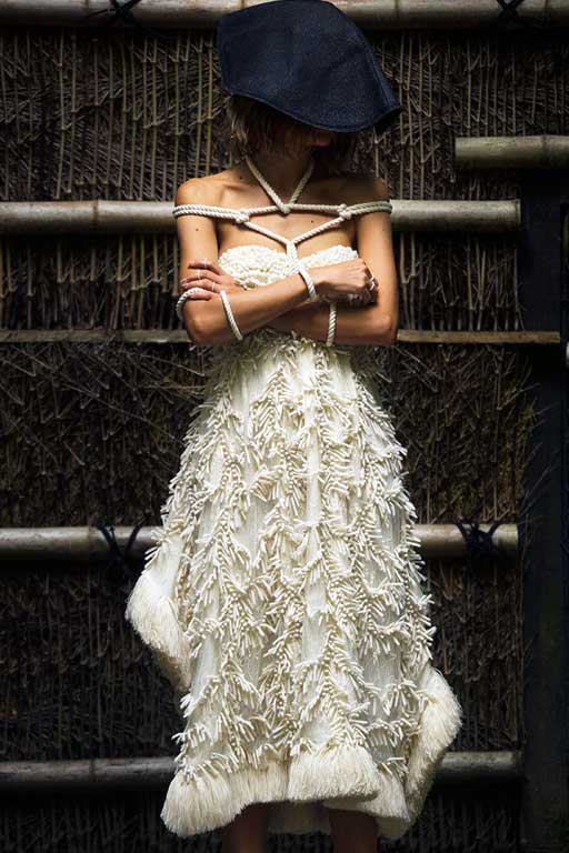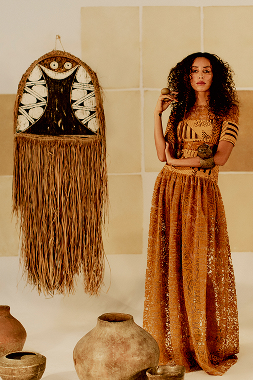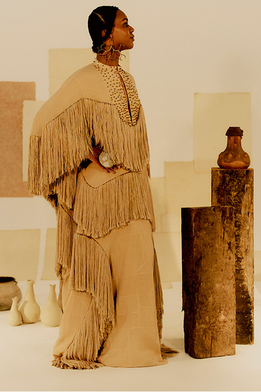 in a movement of introspection. The clothing portray a search for ancestrality and primitive