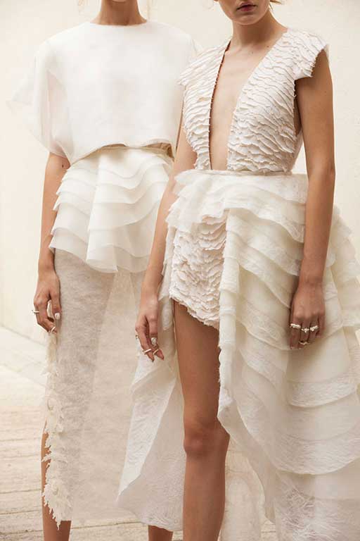Each season different feminine expressions are worked in a poetic and selective way. Different universes, emotions and desires come to life from complex research on moulage and raw materials, carrying our private perspective.