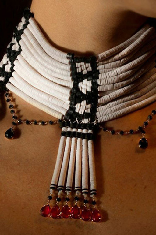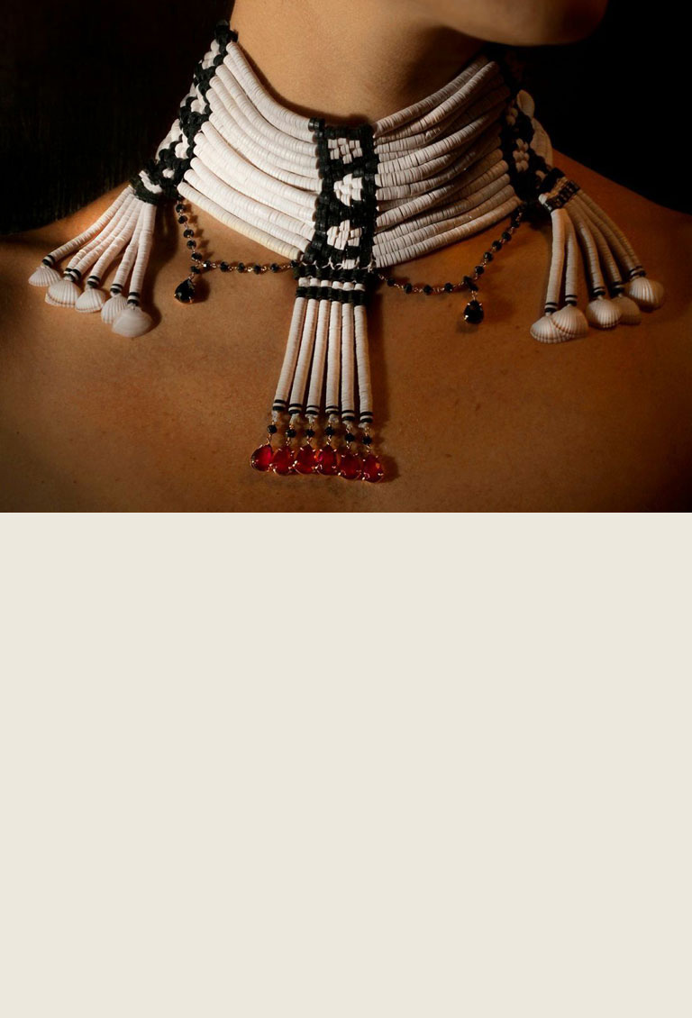 Jóias manufaturadas pelo grupo étnico dos Marubos, na Amazônia e transformadas por Paula Raia através de uma parceria com o designer Ara Vartanian. Essa coleção transparece o desejo de aproximar o objeto simples ao sofisticado, através de um processo de construção participativa e de estímulo às raízes brasileiras. +