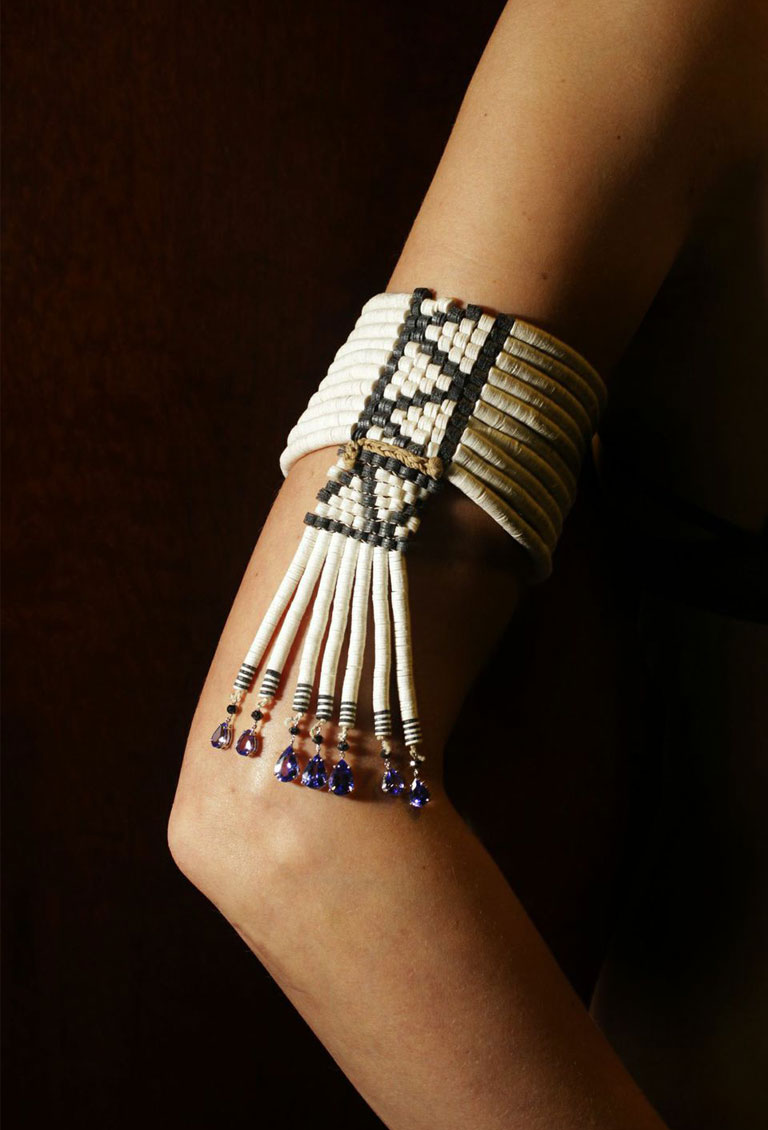 Manufactured by the native ethnic group Marubos from the Amazon, the jewels were transformed in a collaborative partnership established with designer Ara Vartanian. Through a participative construction process and stimulus to Brazilian roots, this collection shows the desire to bring the simple object into sophisticated pieces.