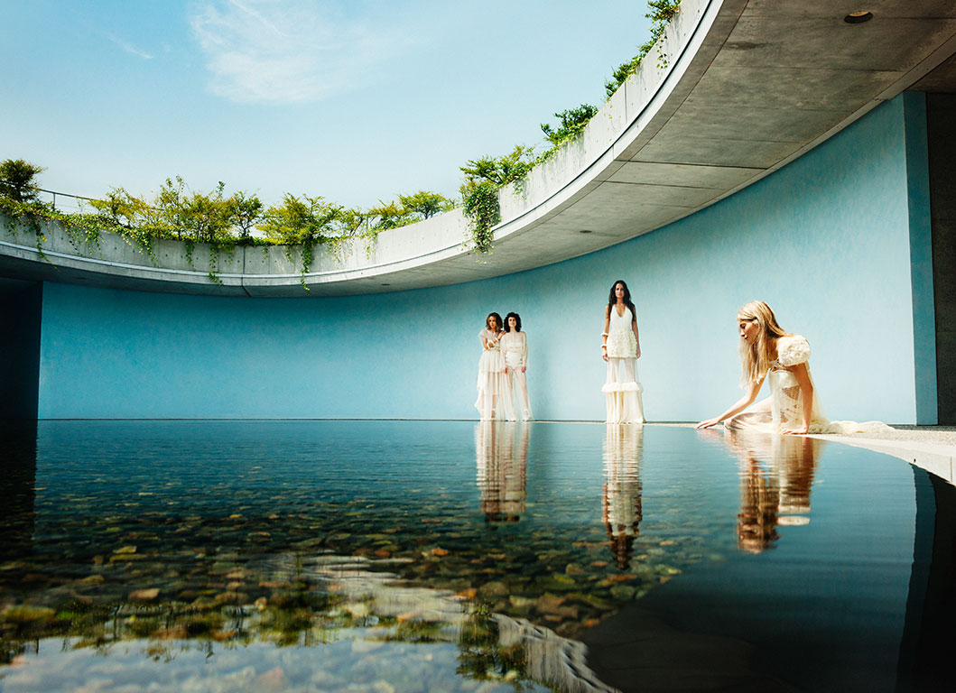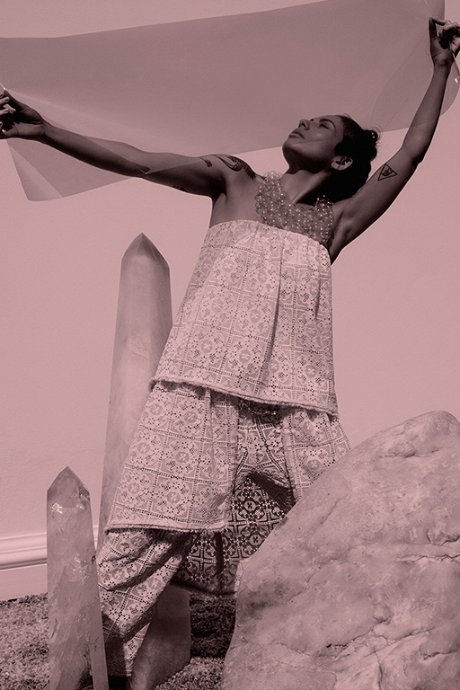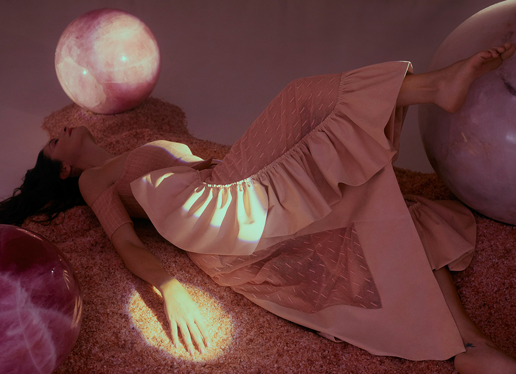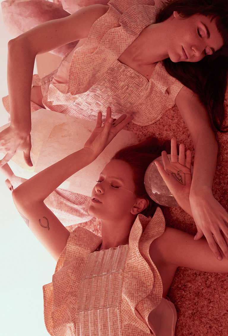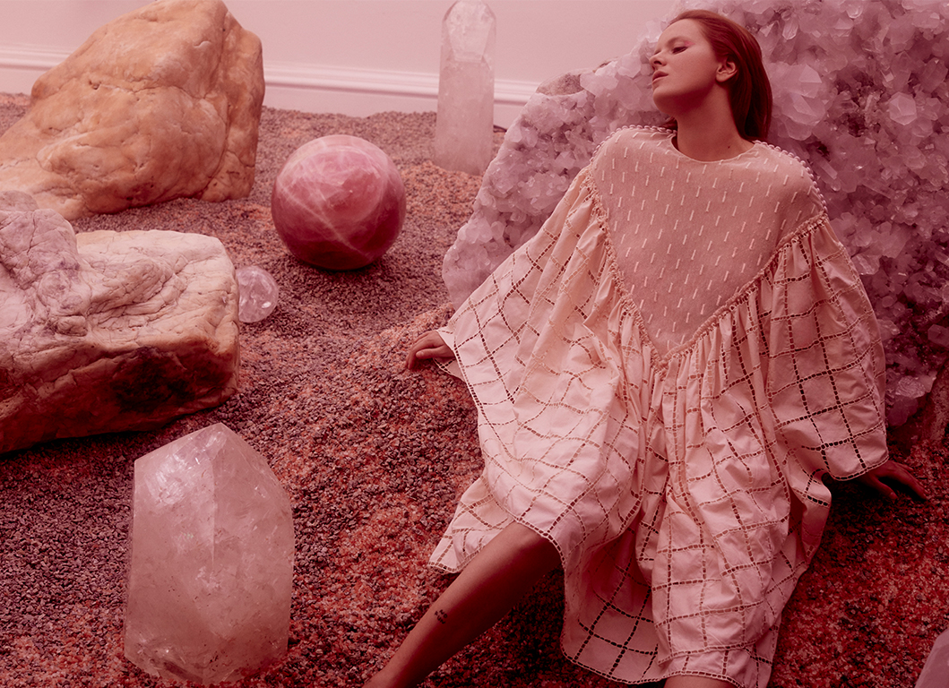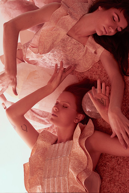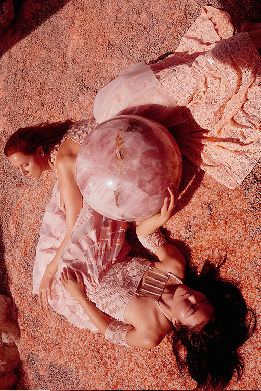 Matéria idealizada por Paula Raia e Vogue Brasil retratando o veio da coleção Verão 2018: Paula Raia juntou-se a outras nove mulheres em uma experiência de autoconhecimento e sororidade para as fotos do Verão 18, que foram tiradas durante rituais que enalteciam o sagrado feminino. Tons róseos evocam quietude e tranquilidade através de algodões “gradeados” e trabalhos artesanais brasileiros, assim como nos relevos dos contornos gráficos de bordados vítreos e acabamentos em conchas trançadas. Fotografada por Rafael Pavarotti +