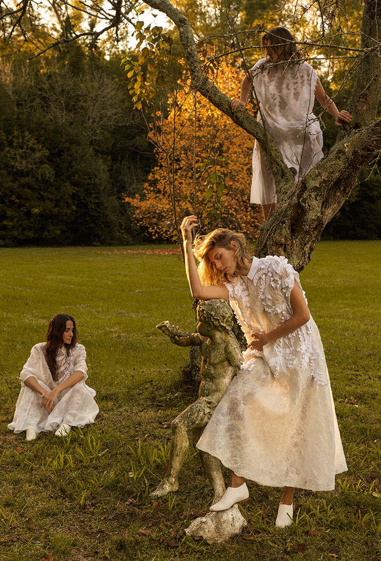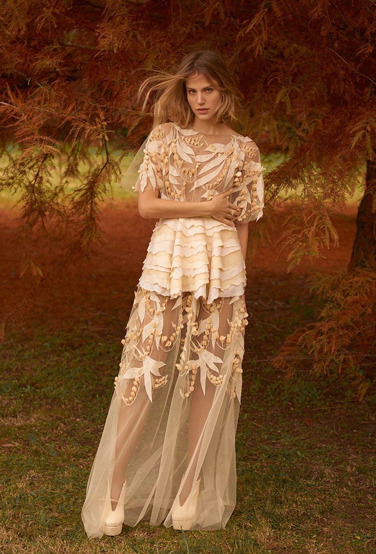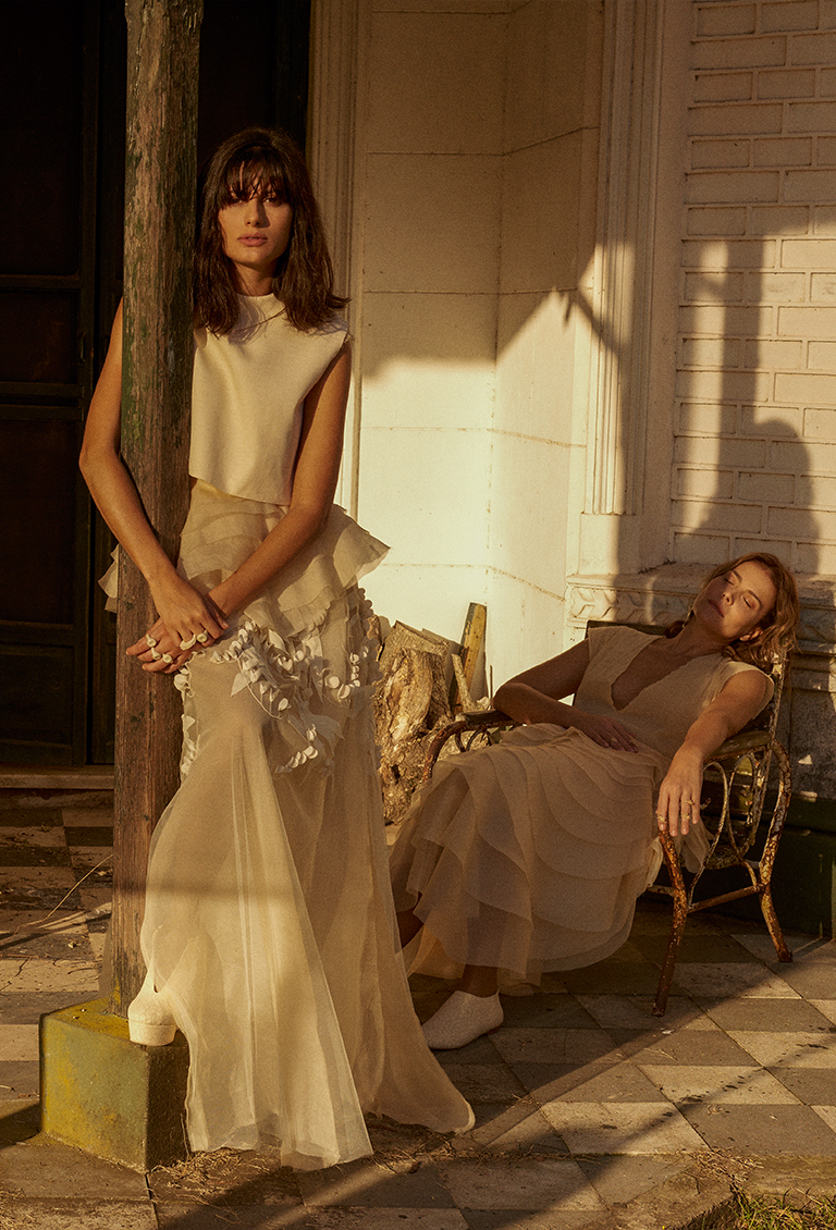 Matéria idealizada por Paula Raia e Vogue Brasil retratando inspirações da coleção de Verão 2017: A ação do tempo marca as roupas da mulher que permeia este universo. Sedas feltradas à mão lembram uma paisagem sépia vista através de janelas empoeiradas, tules de algodão frágeis como gazes e teias, cores desbotadas e envelhecidas e estampas craqueladas como pinturas que sofreram com o passar do tempo. Fotografada por Zee Nunes +