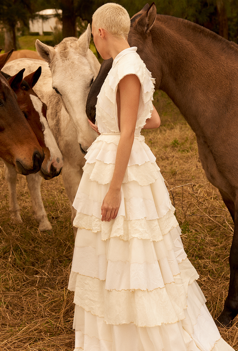 Paula Raia is an architect, the founder and creative director of the brand that carries her own name. Fashion designer for fourteen years, she started her brand in 2010. Her emotional connection with her creations have resulted in excellence and precision. Paula Raia reveals her intuitive and poetic universe through her runway shows, campaigns, and exclusive store, creating an open dialogue with the women who enter this universe.