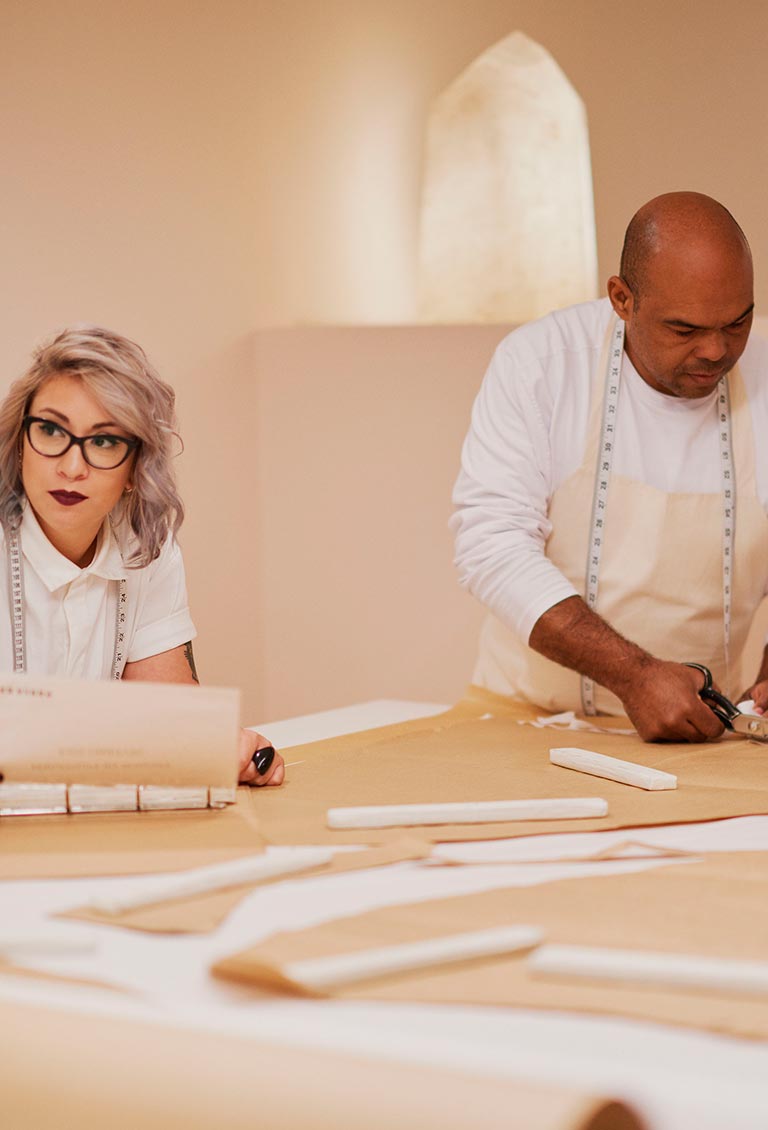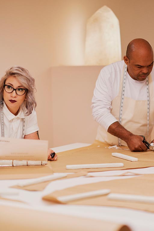 O desejo por novas texturas, matérias, acabamentos e modelagens é a alma da marca. Ao lado do anseio de aproximar-se dos processos manuais, uma pesquisa artesanal intensa é feita no desenvolvimento de cada coleção, resultando em peças e tecidos únicos e exclusivos. +